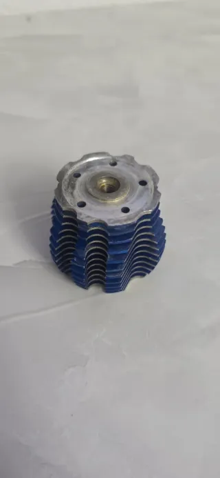 Culata de motor para coche RC Traxxas. Pieza de repuesto con un diseño de aletas para disipación de calor. - Color azul metálico. - Fabricada en aluminio.