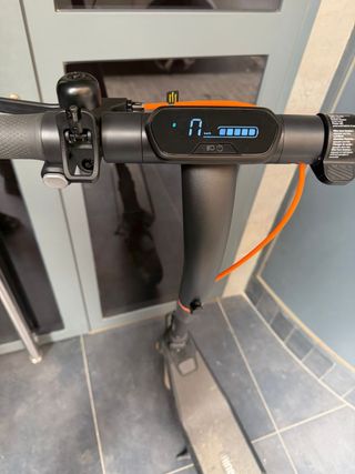 Patinete eléctrico Xiaomi en color negro. Ideal para desplazamientos urbanos. - Manillar con puños grises. - Freno delantero. - Rueda delantera y trasera. - Plataforma para los pies. - muy poco uso