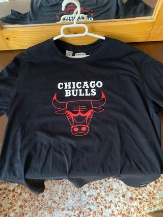 Camiseta negra con el logo de los Chicago Bulls. - Diseño frontal del toro y el nombre del equipo. - Cuello redondo.