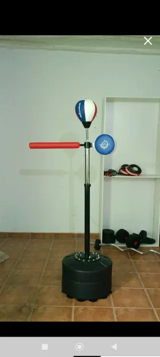 Base de entrenamiento para boxeo con saco y objetivo. - Base pesada para mayor estabilidad. - Saco de boxeo con resorte. - Objetivo de golpeo lateral. Se puede recoger en Paiporta o en Castellón se hacen envíos.