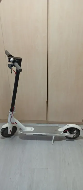 Patinete eléctrico Xiaomi Mi 365 en color blanco. Ideal para desplazamientos urbanos. - En perfecto estado. - Poco uso. - Ruedas de goma macizas. - Juego de cubiertas repuesto nuevo. - Freno trasero cambiado recientemente. - Diseño plegable. - Plataforma antideslizante. - Cargador original.