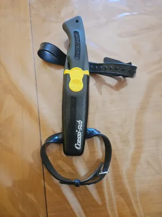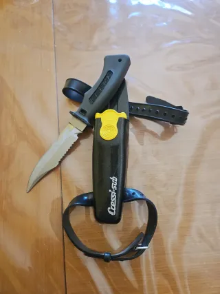 Cuchillo de buceo Cressi-sub con mango ergonómico y correas. - Mango de goma. - Cierre de hebilla. - Color negro y amarillo.