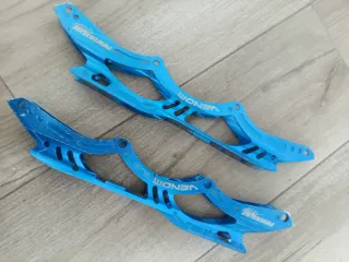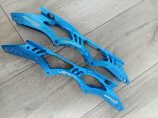 Planchas de patinaje en línea Powerslide Venom. - Configuración 3x100 y 1x90. - Color azul. - Fabricadas en aluminio. Patines en linea patinaje de velocidad