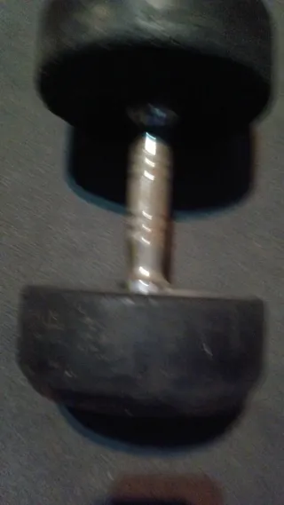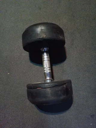 Mancuerna con peso recubierto de goma y mango de metal. - Recubrimiento de goma en los discos. - Mango con agarre texturizado.