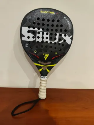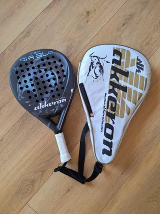 Pala de padel usada con saltos de pintura. Tiene protector y overgrip a estrenar.