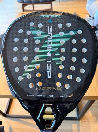 Pala de pádel con acabado en carbono y diseño moderno. - Superficie de control. - Marco de carbono. - Sistema Shock Block. - 370 g. TOTALMENTE NUEVA A ESTRENAR.