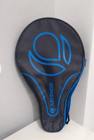 Funda para pala de pádel de la marca ARTENGO. Diseño en color gris oscuro con detalles en azul. - Cierre de cremallera perfecto y sin problemas. - Comodidad al máximo, se puede colgar como mochila. - Perfecto para empezar a jugar a padel.