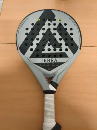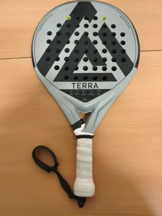 Pala de pádel Alkemia Terra modelo 2025. Diseñada para un juego profesional. - Pala de pádel. - Modelo: Terra 2025. - Línea: Professional Line. - Fabricada en España. - Redonda - Potencia y control Algún toque del uso normal. Adidas, nox, babolat, alkemia, kuikma,
