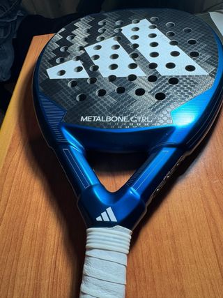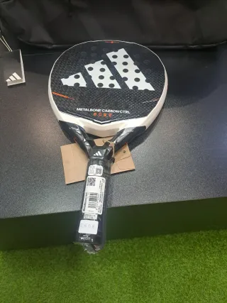 Pala de pádel Adidas Metalbone Carbon Ctrl 3.4 Pala de 2025. Peso 360-375g. Tiene un buen balance, ofrece gran control en cada golpe. - Diseño con el logo de Adidas. - Marco y caras de carbono 6K. - Empuñadura blanca. En el canto tiene un protector nuevo, recién puesto. Si se quita, la pala esta nueva sin defectos. La he usado durante 3 semanas. Esta nueva, sin un solo rasguño. La vendo porque he cambiado a una más con forma de diamante de ataque. De regalo, incluyo 3 grips.
