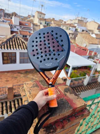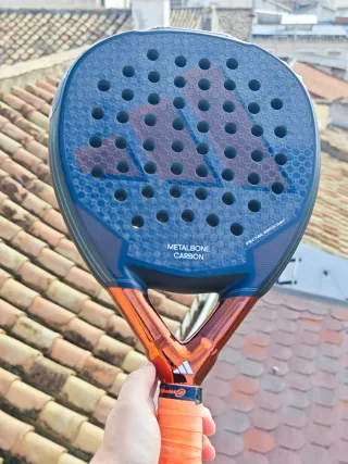 Pala de pádel Adidas Metalbone Carbon con un diseño moderno y llamativo. La vendo porque no es lo que buscaba tiene dos partidos literalmente ni más ni menos. Podría cambiarla por Bull padel hack control o vertex control del mismo año - Pala de pádel. - Modelo: Metalbone Carbon. - Marca: Adidas. - Color: Negro, rojo y detalles naranjas. - Material: Carbono.
