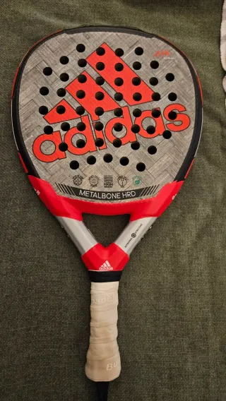 Pala de pádel Adidas Metalbone HRD (Ale Galán) con un diseño moderno y llamativo. Potencia y control con buena salida de bola. - Logo de Adidas, con rugoso 3d. - Goma dura high memory. Reactiva. - Incluye protector, llave y tornillos / pesos para ajustar el balance y el peso. Sólo trato en mano para comprobar que está perfecta. No envío. NO HAGAIS OFERTAS. ESE ES EL PRECIO!
