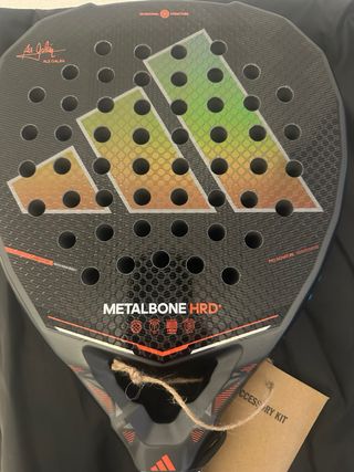 Pala de pádel Adidas Metalbone 3.5 HRD. - Diseño con acabado en negro y detalles verdes. - Incluye funda protectora. - Etiqueta de Accessory Kit. solo envío por Wallapop o entrego en mano