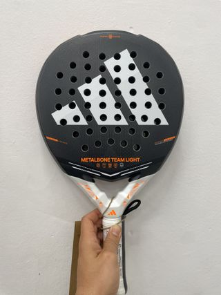 Pala de pádel Adidas Metalbone Lite del año 2022. Diseñada para ofrecer un buen equilibrio entre potencia y control. - Pala de pádel. - Modelo: Metalbone Lite. - Año: 2022. - Marca: Adidas. - 5 partidos jugados con ella, está muy nueva. no negociable, por ahora no tengo prisa en venderla, gracias