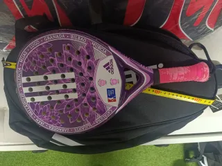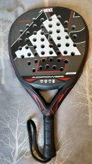 Pala de pádel Adidas Adipower 3.0. En perfectas condiciones solo 10 partidos tuvo golpe y le hicieron reparación profesional y unos pequeños saltos de pintura en cara,muy buen rugoso y bastante potencia.SOLO ENVÍOS