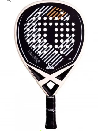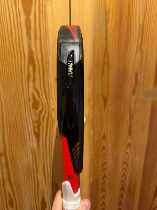 Forma lágrima, favorece la potencia en ataque. Marco de carbono para buena rigidez y durabilidad. Caras de carbono, buen golpeo y salida de bola. Núcleo de goma EVA, con tacto firme orientado al rendimiento agresivo. Balance medio‑alto, pensado para remates y juego ofensivo. Estado general: bastante uso, presenta desgaste normal por el uso (rozones en la zona superior de pintura) y ha sido reparada profesionalmente en la zona superior. Precio negociable dentro de lo razonable.