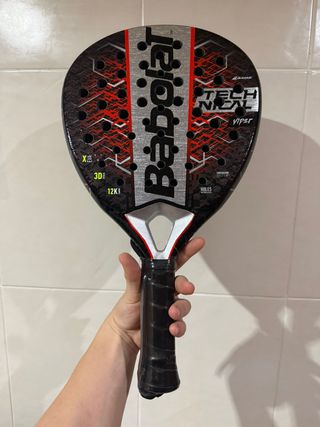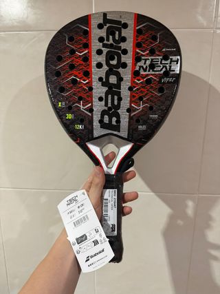 Pala BABOLAT TECH VIPER Nueva para estrenar vale 188.95€ poco uso práctica mente nueva. Pala de ataque con golpe potente i poca vibración. Perfecta para gente más agresiva en ataque Cinta protectora recién puesta