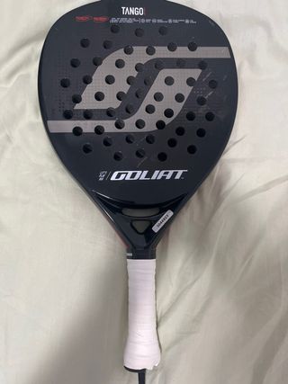 Pala de pádel Goliat modelo Tango Attack del año 2024. Diseñada para un juego agresivo y potente. . - Pala de pádel. - Modelo: Tango Attack. - Año: 2024. - Marca: Goliat. Tiene unos pequeños levantamientos de la pintura como aparece en la última foto por golpes de jugar pero por lo otro perfecto Precio no negociable Se vende por no darle uso