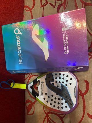Pala de pádel Joma Hyper 3.C, edición especial Valladolid P2. - Diseño para jugadores agresivos que buscan máxima potencia. - Equilibrio que asegura golpes explosivos. - Desarrollada en colaboración con jugadores profesionales. - Compuesta de 3K Carbon. - Perfil de 38 mm. - Balance alto. - Forma de diamante. Tiene muy poco en juego ,2 arañazos en el borde #Joma #padel #Hyper 3.0 #pala Joma