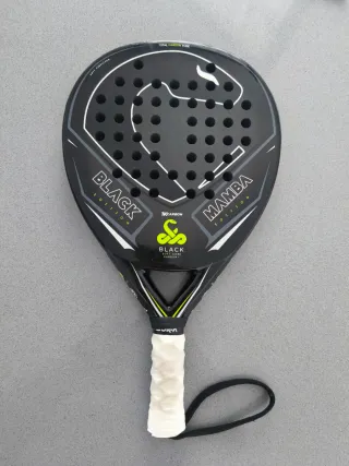 Pala de pádel con diseño agresivo y acabado mate. Con protector, no tiene roces. Incluye hesacore. - Marco: Total Carbon Tube. - Superficie: Black Edition. - Núcleo: Soft Core Carbon. - Tecnología: Anti Vibration. - Modelo: Mamba.