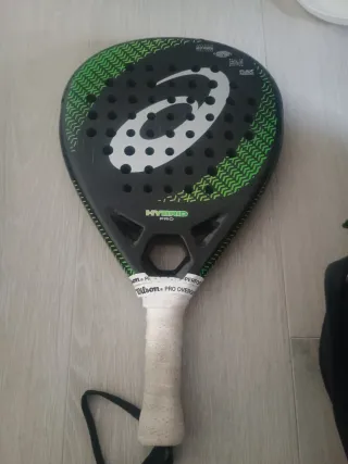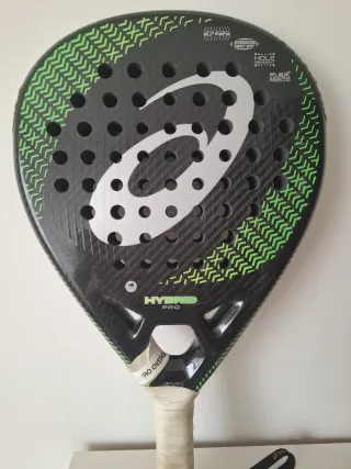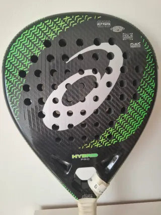 Pala de pádel Asics Hybrid Pro con un diseño moderno y llamativo. Muy buen estado, sin golpes ni rajas. - Superficie con acabado mate. - Marco de carbono. - Agarre cómodo.