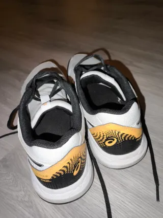 Zapatillas de pádel Asics Gel. Color blanco y naranja. Talla 43 - Diseño deportivo y moderno. - Detalle de logo Asics en los laterales. - Suela de goma para mayor agarre. Padel, zapatillas, deportivas, pista, tenis, Asics, bullpadel, siux, head, nox, at10, nuevo, Segundamano, oferta, rebajas, pala.