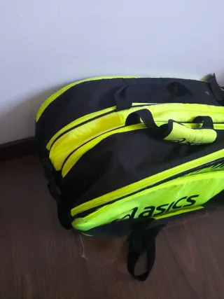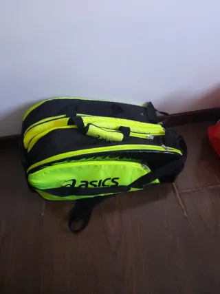 Mochila deportiva de la marca Asics para llevar pala, equipación de pádel, zapatillas y otros. Tiene bastantes departamentos y bolsillos. Además, bolsa para zapas. Se vende por no usar.