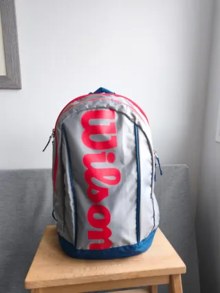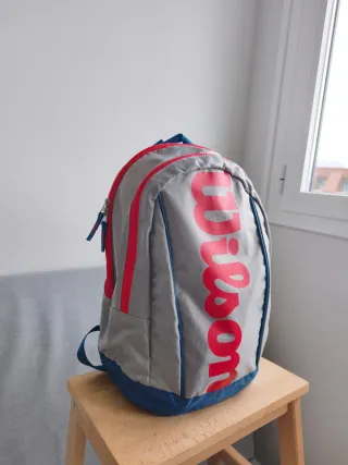 Mochila de pádel Babolat con diseño deportivo. Casi sin uso, se vende por usar mochilas mas pequeñas. - Color azul y naranja. - Logo de World Padel Tour. - Compartimento principal amplio. - Mas Zona de palas con capacidad para dos palas. - Asa superior y correas ajustables.