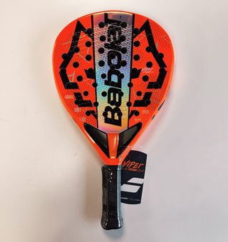 Pala de pádel Babolat Viper Carbon con diseño llamativo. Se encuentra golpeada . - Marco y caras de carbono. - Tecnología Full Carbon. - Sistema Holes Pattern.