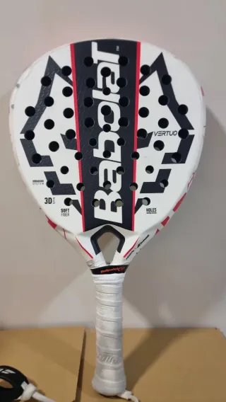 Pala de pádel Babolat Technical Vertuo. Me toco en un sorteo y no me interesa por eso la vendo nueva sin estrenar con etiquetas Precio negociable - Diseño en negro y rojo. - Logo de Babolat en el centro. - Agarre blanco con etiqueta. - Agujeros en la cara de la pala.