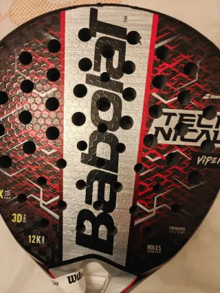 Pala de pádel Babolat Technical Viper del 2025. Diseño moderno y llamativo. - planos perfectos. - Marco en buen estado tenía protector -Tacto seco, dureza media alta muy buen control, y gran potencia. Rugoso arenoso. -8 meses de uso Precio no negociable