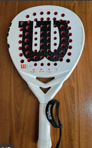 Pala de pádel Wilson LS con un peso de 355 gramos. Presenta el icónico logo W de Wilson en grande y un diseño con puntos rojos. Solo tiene un par de partidos!! - Pala de pádel Wilson. - Peso: 355g. - Diseño con puntos rojos. Nox,pádel,pala,Adidas,bullpadel,head,siux,babolat,puma,Nike, wilson,joma