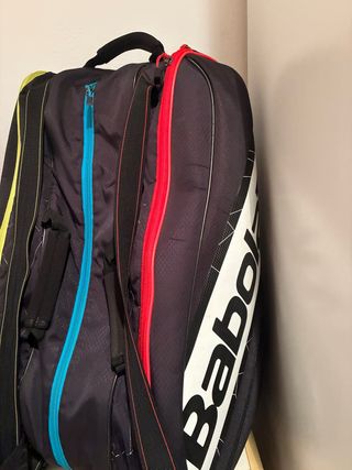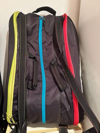Vendo paletero de pádel marca Babolat en buen estado general. Ha sido usado, pero está bien cuidado y cumple perfectamente su función. 📌 Detalle a tener en cuenta: Una de las cremalleras está un poco dañada, por lo que solo se puede abrir en el sentido de abajo hacia arriba, aunque sigue siendo totalmente usable. 👜 Amplio y cómodo para llevar palas, ropa y accesorios. 💰 Precio: 15 € Ideal si buscas un paletero de marca a buen precio. Entrega en mano o envío a cargo del comprador.