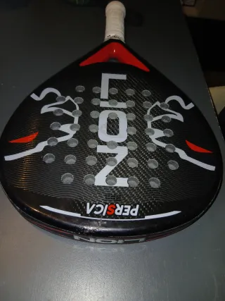 Pala de pádel Persica Lion Pro con diseño deportivo. Pala con pocos partidos pero tiene pequeño salto de pintura /minigrieta que se aprecia en la foto. No afecta en nada para jugar pero eso esta d alli el precio se puede jugar y no afecta o se puede hacer minireparacion. Caras rugosas y toda carbono Son palas fabricadas en barcelona y tope de gama pvp:original 280€ - Pala de pádel. - Marca Persica. - Modelo Lion Pro. - Diseño con leones y detalles en rojo. - Acabado en carbono. Pala de padel nox lion head black crown adidas starvie joma puma babolat bullpadel wilson