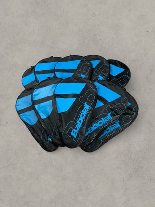 Lote de 30 fundas para palas de pádel de la marca Babolat. Diseñadas para proteger tu equipo. - Color negro con detalles en azul. - Cierre de cremallera. - Logo de Babolat visible.
