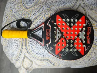 Pala formato híbrido. Goma blanda y carbono 24k. Para mi gusto combina muy bien el control que da el tacto del carbono y la salida de bola de la goma blanda. De hecho, me voy a comprar la misma pala pero en formato redondo porque estoy más acostumbrado. A penas tiene un roce en el marco, justo en la X de Siux (ver fotos). El resto que se ve deteriorado es de un protector que tenía antes que estropeó la pintura. Las caras están en perfecto estado. Regalo bolsa. Venta en persona Madrid, Sevilla y Pamplona.