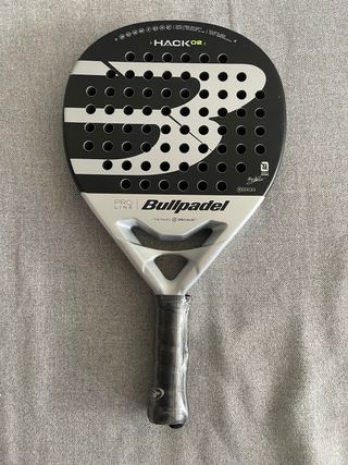 Pala de pádel Bullpadel Hack 03 en perfecto estado, con 4 partidos, comprada en noviembre, lo único que tiene es un pequeñísimo picotazo en la pintura. Tengo el hesacore nuevo quitado que se adjunta con la pala.
