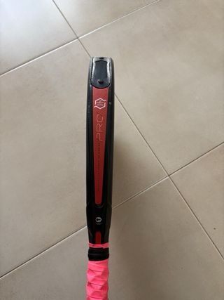 Pala de pádel Bullpadel modelo Hack CTR. - Diseño con detalles en rojo y amarillo. - Empuñadura de color rosa. - Incluye correa de seguridad negra. TIENE ALGUNA RAYADA PERO FUNCIONA Me costó 119,95€ la vendo por 50€