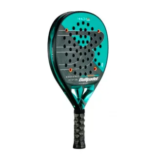 Pala de pádel Bullpadel Hack 04, modelo de Paquito Navarro. - Diseño en color verde y negro. - Incluye correa de seguridad. - Superficie con agujeros. - Marca Bullpadel.