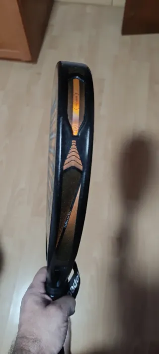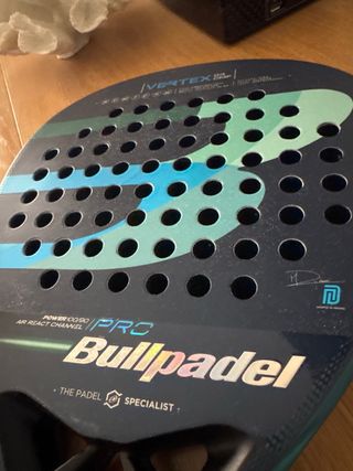 2 meses de uso, no llega a 10 partidos con ella. Añadido ovregrip original bullpadel y protector transparente rugoso en la cabeza de la pala, recortado en las entradas de la pala. No tiene ni un toque ni rasguño. Prácticamente nueva. En PERFECTO ESTADO.
