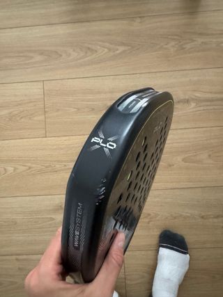 Esta diseñada para jugadores de nivel intermedio o avanzado que busquen potencia para un juego basado en el ataque. Formato diamante y balance alto, serás imbatible en la pista. Fibra de vidrio y carbono en sus planos y el núcleo es de goma Multieva con varias capas de distintas densidades para mayor polivalencia en el juego. El marco Carbón Tuve es de carbono 100% con tecnología XForce para conseguir un tubular más fuerte y resistente. El acabado de los planos es en 3D Grain rugoso para conseguir efectos fácilmente. Peso 356-375 gramos.