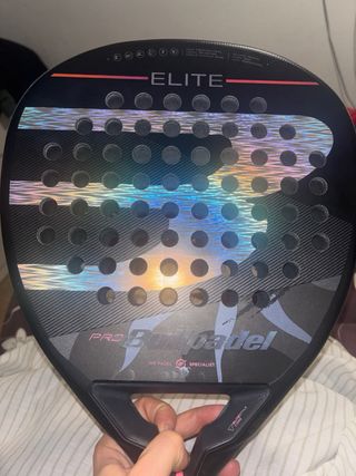 Pala de pádel Bullpadel Elite. - Diseño moderno con detalles en degradado. - Superficie con agujeros para mejor aerodinámica. - Mango con grip negro.