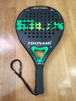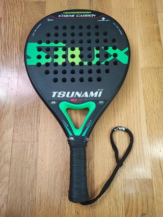 pala de pádel siux tsunami 5.0, pesa 358 gramos, pala muy equilibrada de tacto medio, con fibra de carbono 3K y goma Eva muy cómoda, balance medio-bajo, con buena salida de bola y excelente control, muy cómoda en defensa con mucho control y va muy bien en voleas profundas, bandejas y remates, los globos salen solos, sin apenas uso, prácticamente nueva a estrenar 2 partidos se ha usado. paddel, paddle, padell, padle, pádel head, asics, varlion, siux, drop shot, vision, orygen, wilson, adidas, star vie, kaitt, nox, dunlop, kombat, zyklon, gf padel