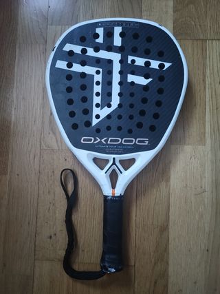 pala de padel oxdog ultimate tour 2023, pesa 365 gramos, pala muy equilibrada de tacto medio-duro, con goma black eva , balance medio, muy buena marca, buen control y gran pegada, con buena salida de bola y excelente control, muy comoda en defensa salen muy bien los globos y va muy bien en voleas profundas, tiene pesos arriba y abajo que se pueden variar, tiene una pequeña reparación en la parte baja se ve en la segunda foto, es un palón. Más artículos de pádel en mi perfil. paddel, paddle, padell, padle, pádel head, asics, varlion, siux, drop shot, vision, orygen, wilson, adidas, star vie, kaitt, nox, dunlop, kombat, zyklon, gf