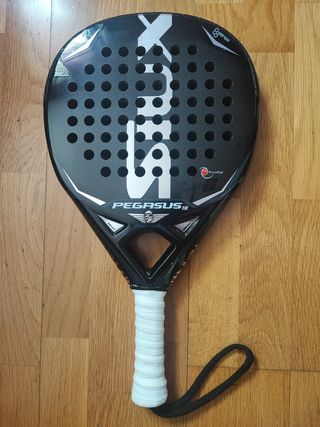 pala de padel siux Pegasus 1k grafeno edición limitada, pesa 358 gramos, pala muy equilibrada de tacto medio, con fibra de carbono 1K y goma Eva muy cómoda, balance medio, con muy buena salida de bola y excelente control, muy cómoda en defensa con mucho control y va muy bien en voleas profundas, bandejas y remates, los globos salen solos, sin apenas uso, tiene puesto protector dejo especificaciones de padelzoom en imágenes. paddel, paddle, padell, padle, pádel head, asics, varlion, siux, drop shot, vision, orygen, wilson, adidas, star vie, kaitt, nox, dunlop, kombat, zyklon, gf padel