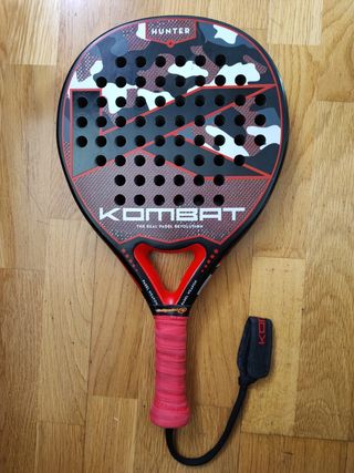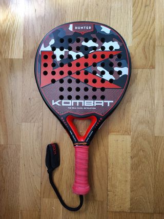 pala de pádel marca kombat modelo Hunter, pesa 356 gramos, pala muy equilibrada de tacto medio tirando a duro, con fibra de carbono 3k y goma Eva muy cómoda, balance medio bajo, con muy buena salida de bola y excelente control, muy cómoda en defensa con mucho control y va muy bien en voleas profundas, bandejas y remates, pala con poco uso, algún roce en el canto, los planos están perfectos, fotos de específicacion padelzoom. paddel, paddle, padell, padle, pádel head, asics, varlion, siux, drop shot, vision, orygen, wilson, adidas, star vie, heroes, nox, dunlop, kombat, babolat, gf padel