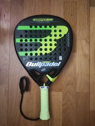pala de padel Bullpadel Vertex 02, la pala de Juan Tello, pesa 360 gramos, pala muy equilibrada de tacto medio carbono 12K con goma black eva , balance medio-alto, mucho control y muy buena pegada, con gran salida de bola, muy comoda en defensa salen muy bien los globos y va muy bien en voleas profundas, es un palón. Se le ha realizado un agujero en el tapón para sacar el cordón por el centro, ya que es más comodo para el juego. Más artículos de pádel en mi perfil. paddel, paddle, padell, padle, pádel head, asics, varlion, siux, drop shot, viper, orygen, wilson, adidas, star vie, babolat, nox, dunlop, kombat, zyklon, gf padel,