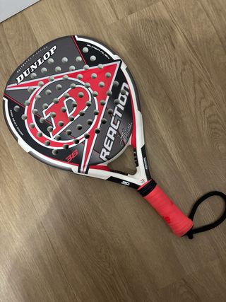 Pala de pádel Dunlop Reaction 38 con funda. - Pala de pádel Dunlop. - Modelo: Reaction 38. - Incluye funda de transporte Dunlop Sport. Está rota por el centro.