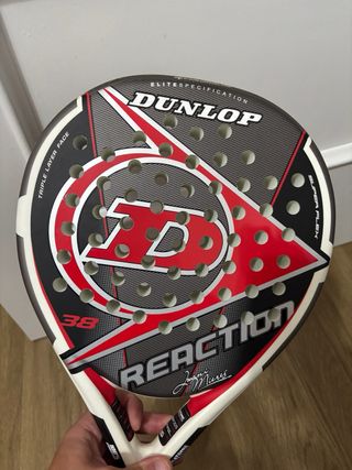 Pala de pádel Dunlop Reaction en edición especial. Juani Mieres - Marco con tecnología Super Flex. - Superficie Triple Layer Face. - Peso de 378 gramos. - grip nuevo