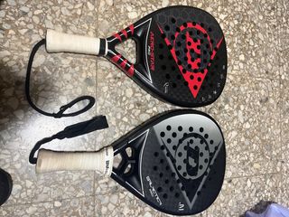 Se venden dos palas de pádel Dunlop, modelo Aero-Star y Galactica Pro. Ideales para jugadores que buscan un buen rendimiento en la pista. - Pala Dunlop Aero-Star Pro. - Pala Dunlop Galactica Pro. algún defectos en cada una de ellas son ediciones de Ramiro Moyano y juani mieres
