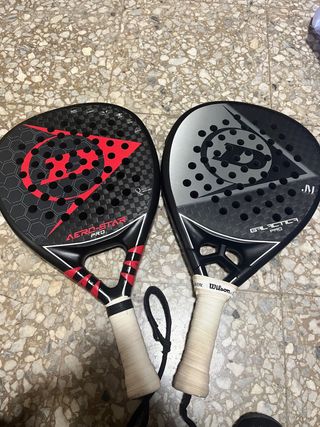 Se venden dos palas de pádel Dunlop, modelo Galaxy y Aerostar. - Pala Dunlop Galaxy. - Pala Dunlop Aerostar. con marcas de uso y defectos la Galaxy y la otra con alguno pero poca cosa